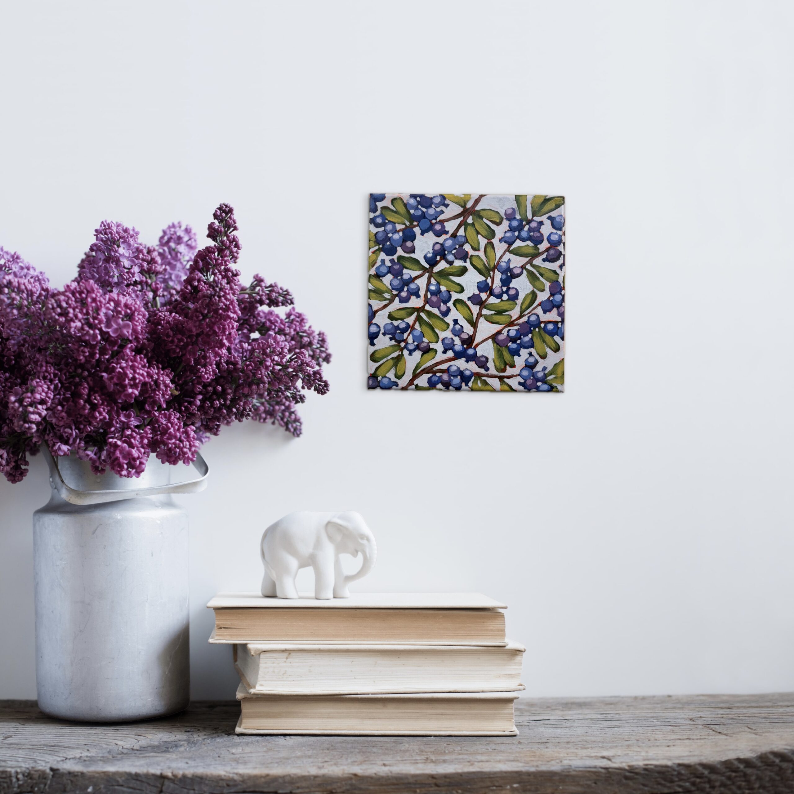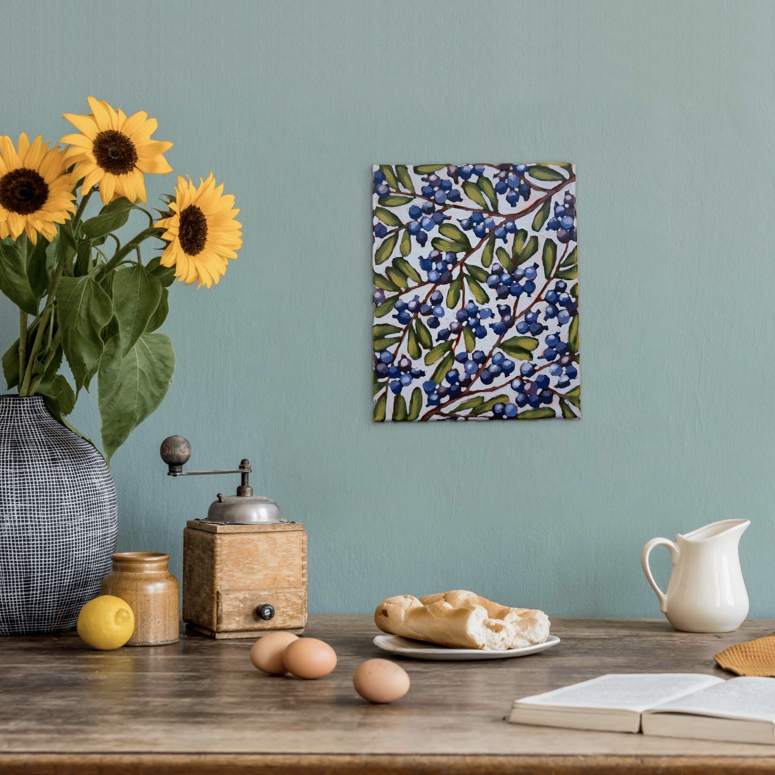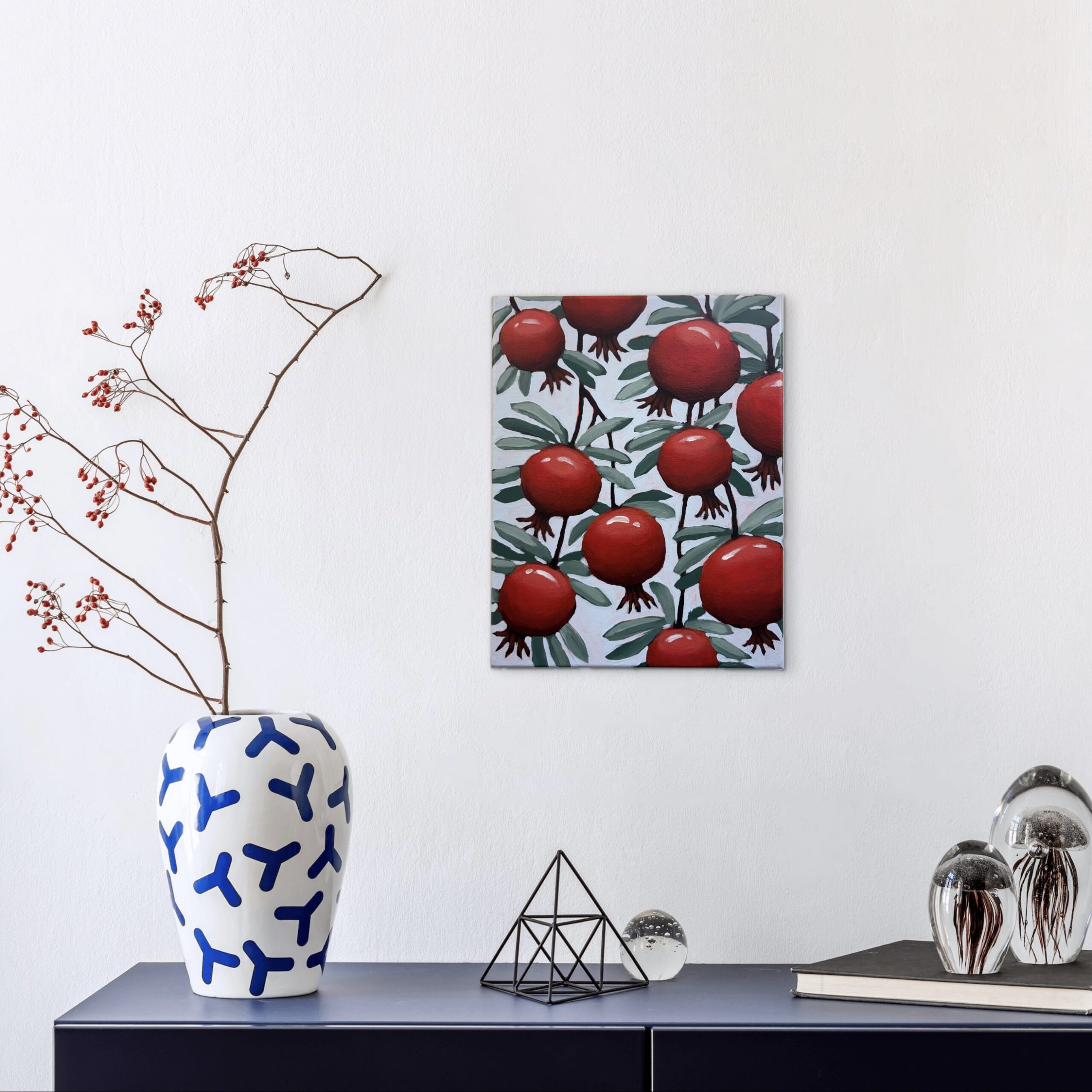 Each painting in my collection is a study of color, light, and simplicity. Working in acrylics with a bold orange underpainting, I capture the essence of a subject with minimal, deliberate strokes. The background sky is painted last, carved into fruit and foliage, giving each piece a crisp, vibrant, and organic feel.