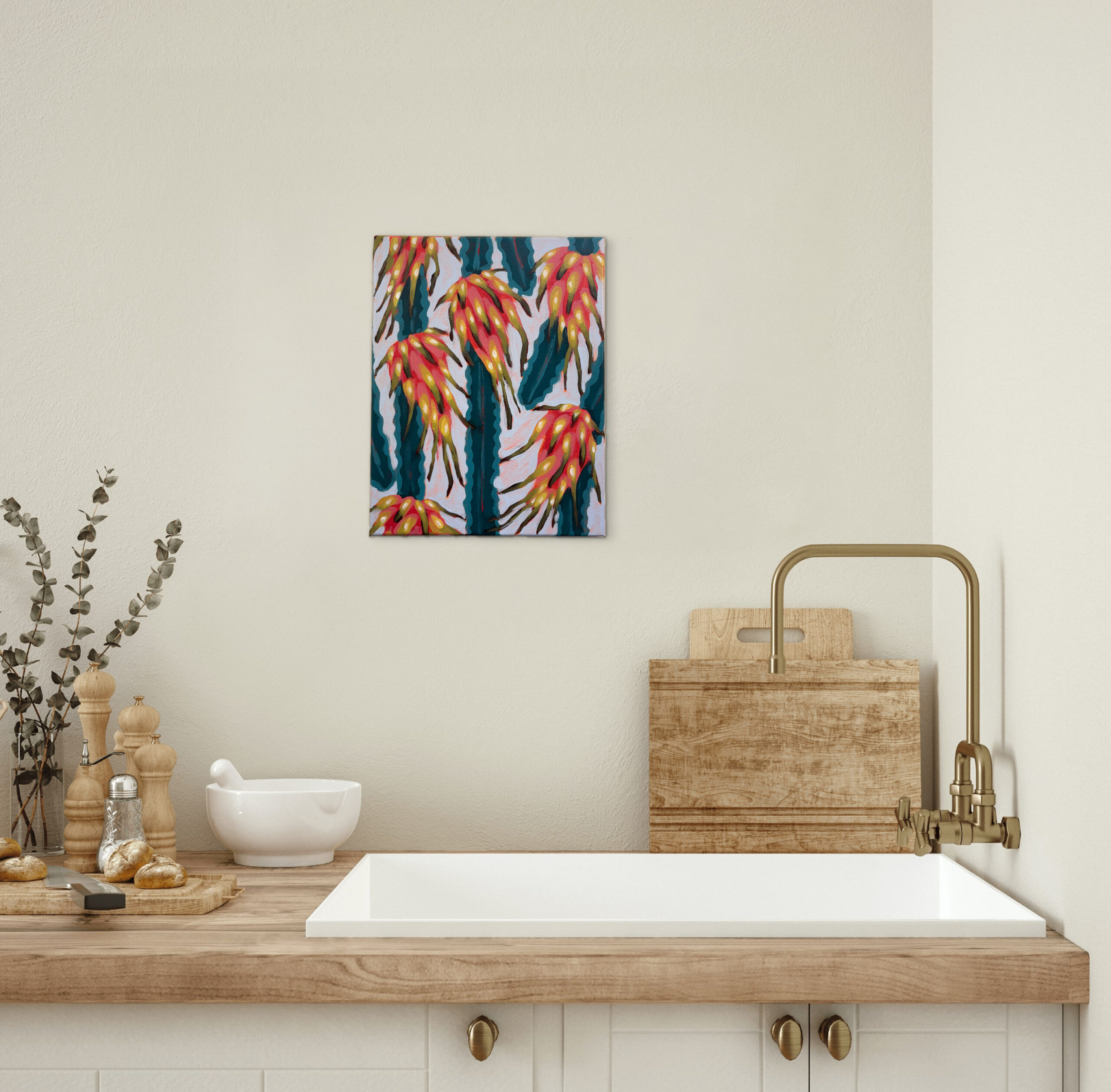 The rectangle shape of these canvas’ allow them to be displayed with 20cm x 20cm and 25cm x 20cm pieces from the other limited series in the 2025 “Dappled Fruit Sky” collection.