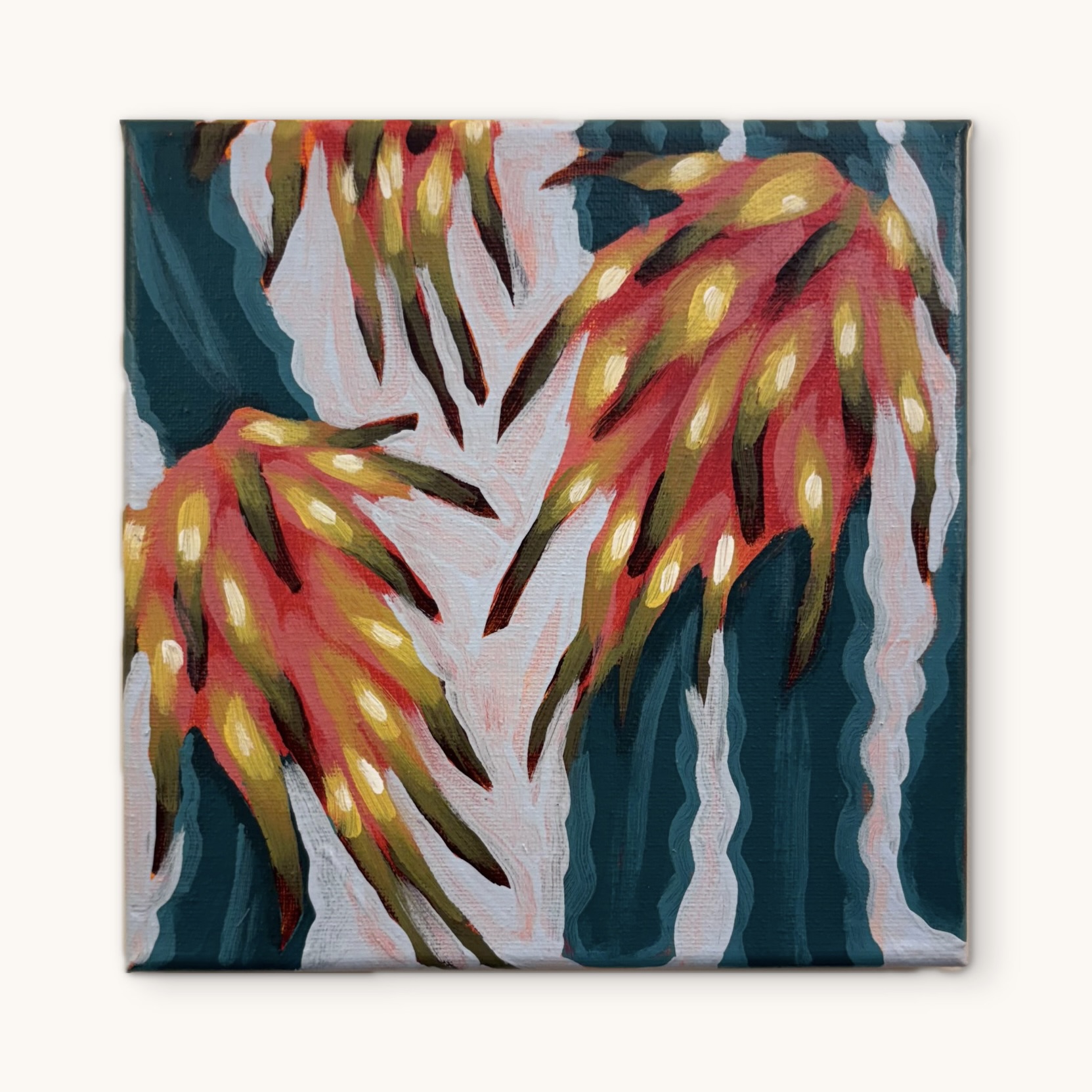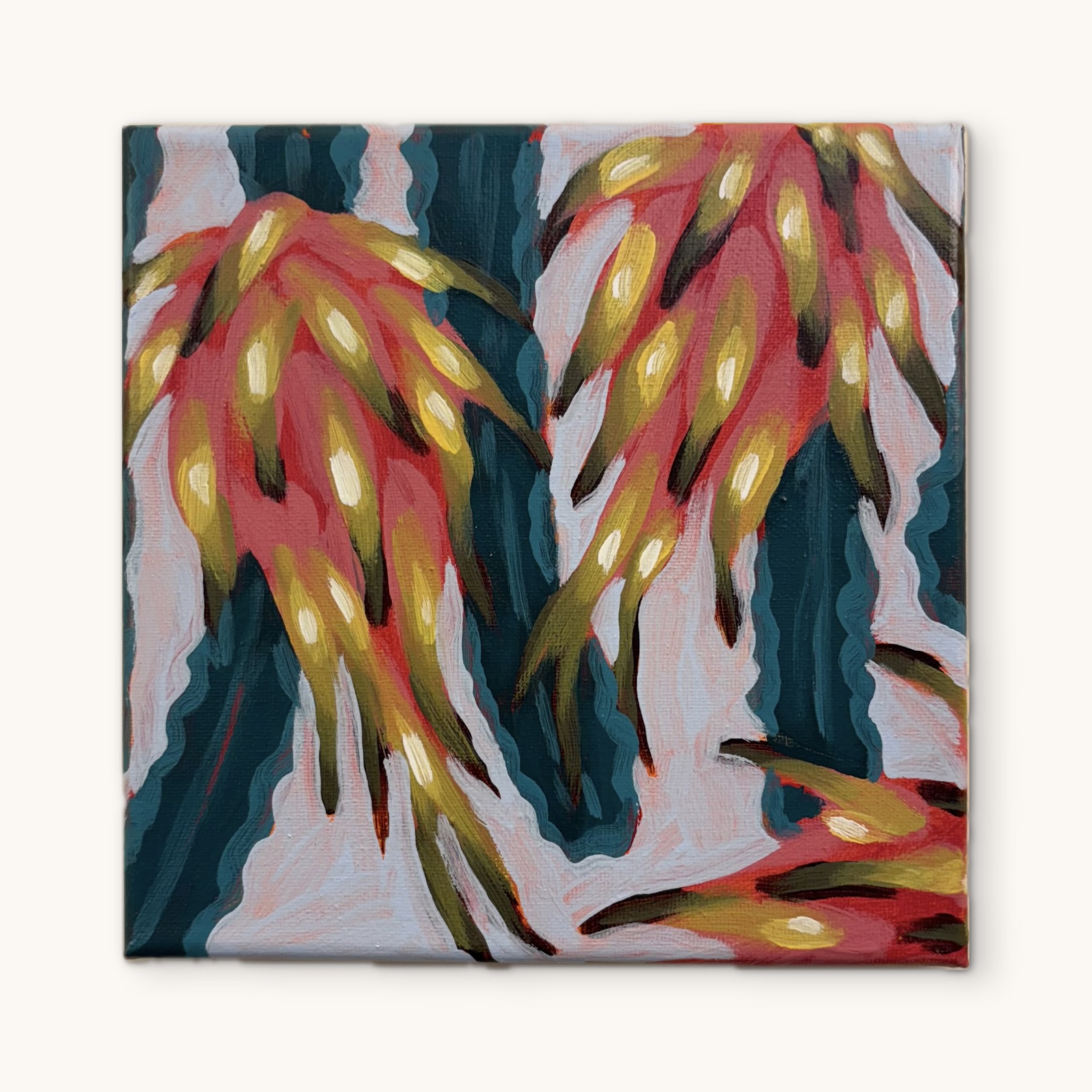 Dragon Fruit paintings 1 to 7 are one third of the 2025 21 limited piece series. This portion of works are 20cm x 20cm on canvas.